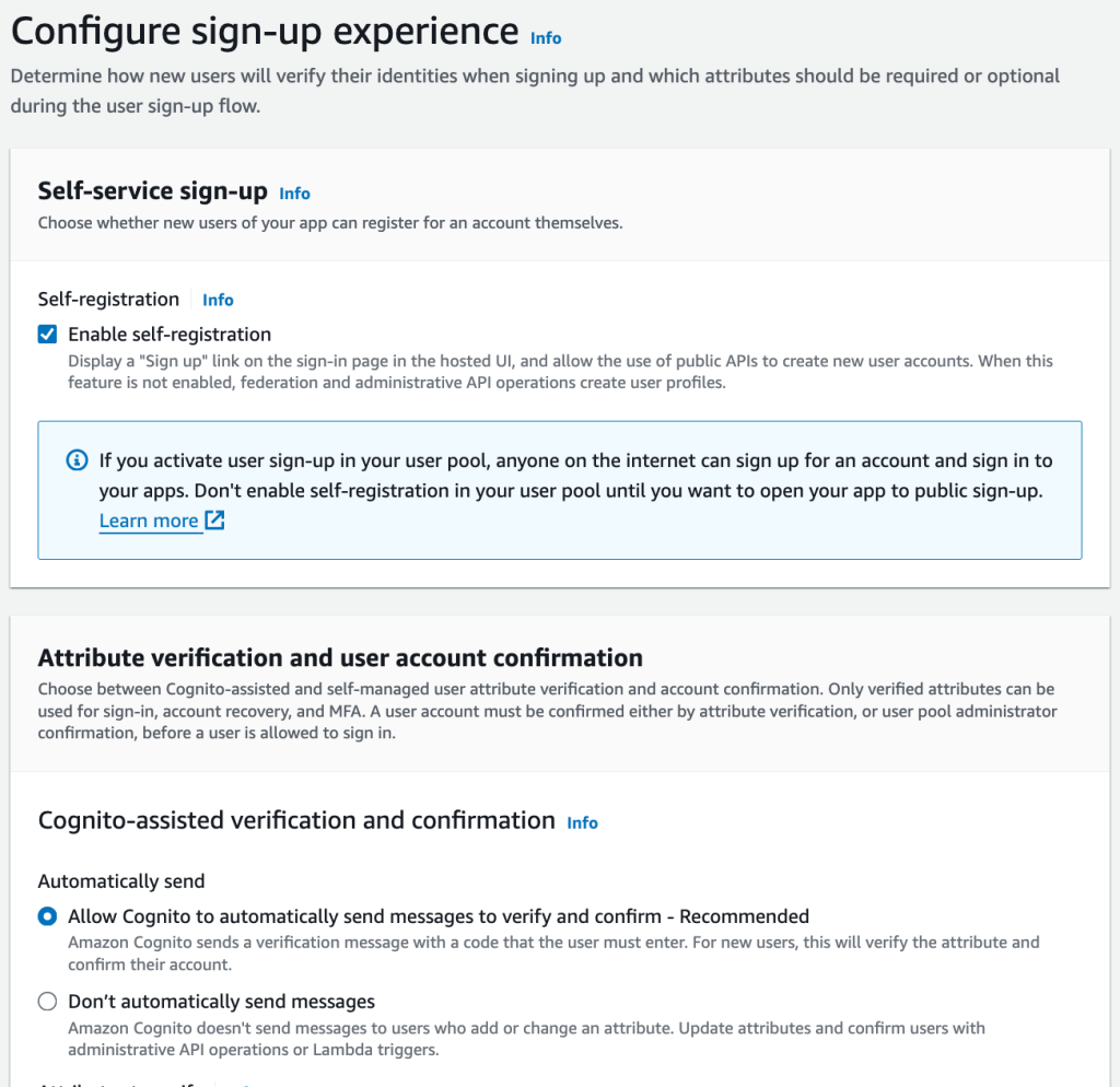 In the third step, I indicate if I allow AWS Cognito to Sign-Up users without any social Sign-In system.