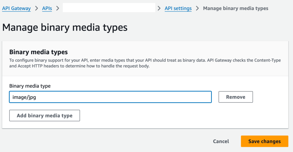 This way, the API Gateway should not pre-format those files. However, I’ve tried with image/jpeg, image/*, even / and nothing changed. If somebody knows how to use this feature, please add a comment.