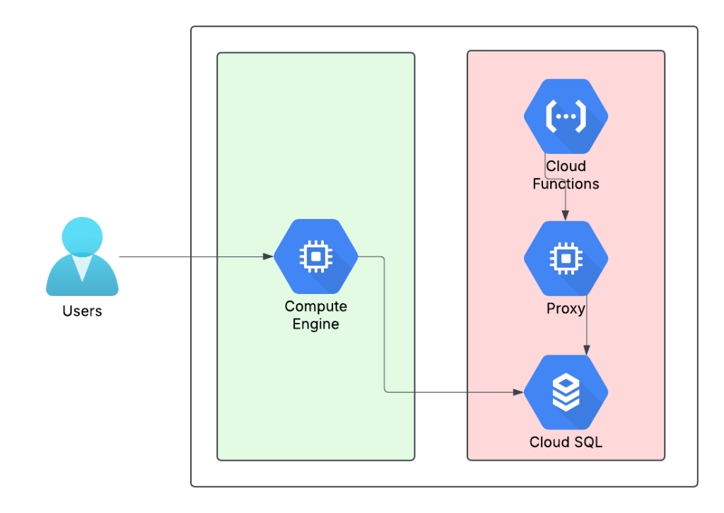 So, the proxy is called the Serverless VPC Access, an always-on instance (or multiple instances, depending on your workload) that acts as a middleman between the Cloud Functions and the database.